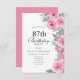 Convite Mola Floral a Cor Rosa Feminina - 87.º Aniversário