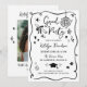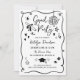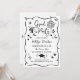 Deixe todos animados para celebrar com este convite de formatura divertido e alegre, apresentando um estilo de desenho à mão excêntrico e um contorno de moldura ondulada em preto e branco nítido. O design é repleto de doodles caprichosos de formatura - touca de formatura, diploma enrolado com laço, estrelas, brilhos, corações, flores, rabiscos ondulados e um acento de festa festivo. Personalize o nome do formando, além da data, hora, local e detalhes de RSVP. A parte de trás coordenada inclui uma foto com os mesmos acentos de doodle.
