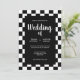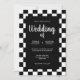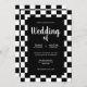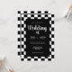 Outro convite de casamento original com uma moldura brilhante de azulejos xadrez preto e branco em um fundo preto puro. Uma variação divertida de um tema clássico e atemporal. Um design sofisticado para qualquer tipo de casamento em qualquer época do ano. Você pode alterar os nomes e a data no menu de personalização.