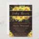 Este convite de chá de bebê rústico apresenta girassóis vibrantes e folhagens exuberantes contra um fundo quente de textura de madeira, criando uma estética charmosa e sofisticada de campo. A caligrafia elegante combinada com uma tipografia serifada limpa adiciona um toque polido e acolhedor, enquanto as flores amarelas brilhantes trazem calor alegre à celebração. Perfeito para locais de celeiro, reuniões ao ar livre, chás de bebê de verão ou qualquer tema floral rústico, este design é totalmente personalizável com os detalhes do seu evento. Ele também combina perfeitamente com papelaria de girassol correspondente para um conjunto de chá de bebê ensolarado e coeso.