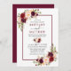 O Convite para Casamento Floral da Burgundy Burgundy inclui rosas de burlagem, rosas cor-de-rosa, rosas vermelhas e vegetação botânica - Borgonha