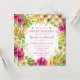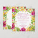 Este vibrante design de aquarela tropical é emoldurado por flores de hibisco ousadas, delicadas flores de frangipani e folhas de monstera verdes exuberantes para um visual fresco inspirado em ilhas. As flores impressionantes de aves do paraíso adicionam altura e movimento, criando uma atmosfera brilhante e comemorativa que parece instantaneamente quente e convidativa.