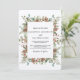 Celebre seu dia especial com este convite de casamento elegante com folhagens de inverno, apresentando uma moldura encantadora de pinhas em aquarela, folhas de eucalipto, galhos de cedro e botânicos suaves de inverno. O fundo rústico inspirado em kraft adiciona um toque quente e natural, tornando este design uma escolha linda para casamentos de inverno, celebrações de Natal, cerimônias na floresta ou locais aconchegantes nas montanhas.