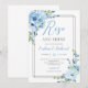 Convite de casamento brunch 'levante e brilhe' com moldura de prata floral azul claro, Entre em contato para itens correspondentes ou para personalização, Blush Roses ©