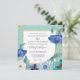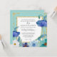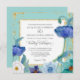 Convite Moldura Dourada Floral Azul-Aqua e Branco
