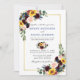 O Convite para Casamento Floral Moderno Elegante Watercolor Burgundy inclui rosas burguentos, rosas cor-de-rosa, flores vermelhas, flores azuis, girassóis, folhas de eucalipto e verde botânico. Dourado quadro.