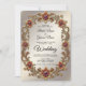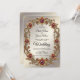 Bela Moldura Floral Dourada com Convite de Casamento com Pedras Vermelhas