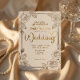 Defina um tom sofisticado para o seu casamento formal de primavera com este convite elegante, apresentando rosas vintage e uma moldura requintada em folha de ouro falso sobre marfim.