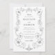 Apresente o seu dia de casamento com uma atemporal elegância usando este convite de casamento com a Elegante Moldura Floral Ornata. O design apresenta os seus nomes e detalhes da celebração lindamente dispostos no centro em tipografia clássica preta, rodeados por uma intricada moldura floral inspirada no vintage. A paleta de cores preta e branca realça a estética formal, permitindo que os delicados elementos botânicos e os detalhes ornamentais se destaquem com uma clareza impressionante. Inspirado em papelaria tradicional gravada, a tipografia refinada e a composição simétrica criam um visual que se sente sofisticado e duradouro. Perfeito para casamentos formais, locais de propriedade, ambientes históricos e casais que se sentem atraídos por papelaria de casamento clássica preta e branca, este convite oferece uma maneira elegante e memorável de partilhar o seu dia especial com familiares e amigos.