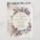 Uma estrutura floral russa com pássaros, um intrincado e belamente rústico design. As flores de aquarela entrelaçam-se em torno de uma estrutura circular. Um estudo detalhado de pássaros gentilmente percorrendo o texto elegante. Para um casamento elegante e rústico. Tons de ameixa, azul empoeirado, e verdes de esmeralda escura a sábio macio. Para se adequar a um casamento rústico no verão, mas combinado com os envelopes e acessórios certos, também poderia servir a um casamento outono ou inverno sazonal ou de inverno.