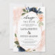 Design moderno e elegante impresso em Azul Marinho e Rosa Bege Floral em Flor e Moldura Geométrica Convite de Mudança de Planos que pode ser personalizado com o seu texto. Por favor, clique no botão "Personalize" e use nossa ferramenta de design para modificar este modelo. Confira a loja de Design de Arte Gráfica para outros produtos que combinam com este design!