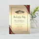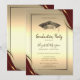 Convite Moldura Vermelha Chic,Graduação Dourada Boné de fo