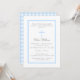 Primeira comunhão de Soft Blue ou convite para batismo com cruz e quadro simples e elegantes. Doce xadrez de búfalo no lado oposto. Personalizar para batismo, comunhão ou qualquer evento religioso especial.