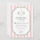 Celebrate your new addition with this "Little Putter on the Way" golf-themed baby shower invitation. Featuring classic preppy sage green stripes and a vintage monogram crest illustration, this elegant design is perfect for a country club luncheon or a sporty backyard celebration. Easily customize with your event details to create a timeless keepsakes for the par-tee!