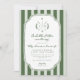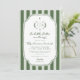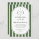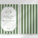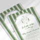 Celebrate your new addition with this "Little Putter on the Way" golf-themed baby shower invitation. Featuring classic preppy sage green stripes and a vintage monogram crest illustration, this elegant design is perfect for a country club luncheon or a sporty backyard celebration. Easily customize with your event details to create a timeless keepsakes for the par-tee!