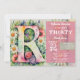 Convite Monogram R Colorful Watercolor Flowers Birthday