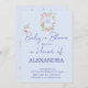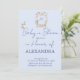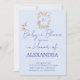 Uma maneira especial de dar as boas-vindas ao novo bebê com sua crista floral pessoal. Honre a nova Mãe neste elegante Chá de fraldas azul. Altere facilmente as informações para a celebração de seu próprio Chá de fraldas personalizado.