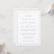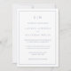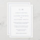 Convite de casamento simples e completo, apresentando um design moderno e elegante com o seu monograma de duas letras no topo e os seus detalhes cercados por uma fina borda. Todos os elementos do design são azul empoeirado sobre um fundo branco e podem ser alterados para qualquer cor desejada na ferramenta de edição de design. O verso contém todos os detalhes do casamento, eliminando a necessidade de um cartão de inserção separado, tornando este um conjunto de convites de casamento econômico. Um design sofisticado e elegante, ótimo para casais minimalistas.