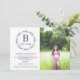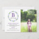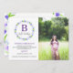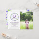 Um "B" grande, monograma e roxo senta-se dentro de uma coroa de flores suavemente colorida para o nosso B é para o Baby Chá de fraldas Photo Invtions.