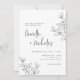 Simples Monograma Botânico Convite para Casamento Preto e Branco