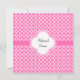 Branco monograma em convites para janto de ensaio de padrão quatrefoil cor-de-rosa quente.