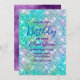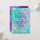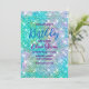 Convite de aniversário unicórnio iridescente chic para qualquer idade com design de gota a brilho legal. Para torná-lo extra especial você irá personalizá-lo com sua própria informação com lindas fontes de monograma. NOTA: Estes são gráficos impressos - sem brilho real, joias ou peças levantadas.