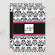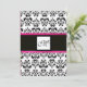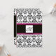Convite MONOGRAMA DAMASCO, preto branco, rosa fúcsia viole