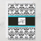 Convite MONOGRAMA DAMASCO,preto e branco,turquesa azul