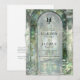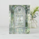 Convite de casamento com monograma elegante, apresentando uma bela, romântica e ornamentada cena de um arco de jardim em aquarela com mosaicos de vidro e folhagens em tons de verde esmeralda, oliva e sage, destacando os detalhes do seu casamento. Verso com um delicado brasão de monograma em estilo barroco com as iniciais do casal e a possibilidade de adicionar mais detalhes, ideal para site, vestuário ou instruções de RSVP, ou você pode deixar a seção de texto em branco e complementar o convite com nossos cartões de inclusão coordenados. Refinamento do design onde a sofisticação clássica encontra o charme moderno. O design exala elegância atemporal, complementada por uma linguagem estilosa que mistura tipografia clássica e caligrafia delicada. Parte da nossa coleção "Elegância Atemporal Verde", este convite combina perfeitamente com itens de suite e papelaria de evento correspondentes. Romântico, elegante e único. Este modelo é fácil de usar e projetado para casais que desejam um convite de casamento tão memorável quanto a sua