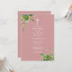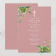 Convite Monograma de folhagem rosa poeirenta Batismo