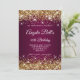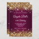 Um convite de aniversário de 40 anos elegante para ela. Personalize o texto para outra celebração de aniversário de marco. O recurso de arte digital falha a brilho dourado brilhante com faíscas extras contra uma imagem sombria do vinho. O monograma branco de caligrafia com letra de solteiro pode ser personalizado. Todos os elementos brilhantes nesta design de menina moderna são gráficos digitais.