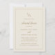 Estilo tradicional Janto de ensaio Convite com um simples design com seu monograma junto com seus detalhes em um elegante ouro falso sobre um fundo de marfim/creme. Este clássico Convite ao Janto de Ensaios é excelente para um casamento formal.