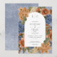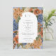 Convite Monograma Floral Russo Azul e Laranja Queimado