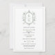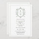 Elegante sage verde vintage monograma floral e convite para casamento na fronteira. Convide seus convidados com este charmoso convite de casamento, com um design floral verde de sage. Uma crista bem trabalhada mostra seu monograma personalizado junto com seus nomes em tipografia verde complementar. Uma fina borda verde completa o olhar elegante. No verso, um código QR fornece acesso rápido aos detalhes de RSVP e outras informações essenciais sobre casamento.