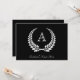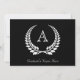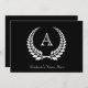 Dentro de monograma inicial personalizado a coroa branca da coroa da coroa da coroa da louça da silhueta branca. Anúncio formal de graduação personalizada de preto e branco para a faculdade ou qualquer nível. Fundo preto clássico com forma de folhas de louros e rico e letra de solteiro elegante inicial.