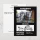 Um elegante casamento com carruagem puxada por cavalos feito em um estilo de arte linear. A parte superior tem "Getting Hitched" definido como um campo de texto. Abaixo do título há uma foto de dois cavalos brancos acorrentados juntos, que pode ser facilmente alterada para sua própria imagem com a fotografia do seu casamento. "John e Jane" é o espaço para o nome que pode ser ajustado de acordo com as suas necessidades. A data de salvamento e a localização estão localizadas na parte inferior. No geral, um ótimo modelo de casamento que pode ser reaproveitado para qualquer evento de cavalgada ocidental ou de trilha também.