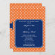 Convite Monograma Laranja, Bolinhas Brancas com Azul Real