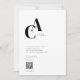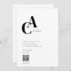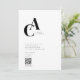 Monograma, mínimo, moderno, convite de casamento QR-Code. Procurando um convite de casamento moderno e elegante? Nosso Convite Monograma de Casamento Minimalista combina design limpa com a praticidade da conveniência digital. O monograma ousado cria uma na moda e elegante primeira impressão, perfeita para casais que apreciam estética minimalista. Este convite é mais do que um belo design - também apresenta um código QR que liga diretamente ao seu site de casamento personalizado. Seus convidados podem acessar facilmente detalhes essenciais como informações do local, acomodações e atualizações de agendamento. Além disso, com uma opção de RSVP digital, responder ao seu convite é apenas uma varredura, fazer o processo sem problemas para todos. Quer você esteja planejando um casamento íntimo ou uma grande celebração, este convite de casamento moderno oferece um equilíbrio perfeito de simplicidade e funcionalidade. Principais recursos: tipografia minimalista e ousada com código QR monograma personalizado vinculando ao seu site de casamento ou página RSVP Ideal para design elegantes e contemporâneos para casais que buscam artigos modernos para o casamento Por que escolher um convite para casamento com código QR? Incorporar um código QR nos convites para o casamento garante que os convidados tenham acesso instantâneo a todos os detalhes do casamento, incluindo instruções, registro de presentes e até mesmo um formulário de RSVP digital. Simplifique o processo tanto para você quanto para seus hóspedes, tornando-o digital!