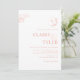 Um convite de casamento elegante, com estilo moderno e mínimo, mostrando um delicado monograma desenhado à mão, tipografia contemporânea, e um detalhe floral sutil, desenhado à mão, em tons de rosa e pêssego. Fácil de preencher o modelo. Capacidade de "editar usando a ferramenta design" e fazer alterações no tamanho, estilo e posição da fonte, bem como a opção de mover a marca "&" para ficar antes do segundo nome, em vez de depois do primeiro nome, se isso se adequar melhor ao seu nome. Disponível em várias formas e opções de tipo de papel. Coordenando envelopes, cartões de cerimônia e o resto da suíte de casamento em três opções: em cor-de-rosa-pincel, ou em branco com texto e detalhes florais como o convite, dando a você a liberdade de criar sua suíte de casamento como quiser. Misture as cores, ou construa sua suíte de casamento em apenas um tom. Parte da nossa coleção "Modern Elegant Typografia Blush Pink, Peach Wedding" com uma variedade excelente de produtos coordenadores. Visite a coleção inteira aqui: https://www.zazzle.com/collections/modern_elegant_typography_blush_pink_peach_wedding-119830398928263190