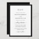 Este Convite de Casamento com Borda Preta e Branca com Monograma é a combinação perfeita de tradição atemporal e simplicidade moderna. Uma moldura preta clássica emoldura um fundo branco crocante, direcionando o olhar para o monograma personalizado da noiva e do noivo no topo - um detalhe elegante que torna seu convite verdadeiramente único. A bela tipografia em letra cursiva flui graciosamente pelo design, criando um visual refinado e convidativo. Cada detalhe pode ser personalizado, desde a redação até os estilos e tamanhos de fonte, bem como opções de fundo, dando a você a liberdade de torná-lo um reflexo perfeito da sua história de amor. Comece sua celebração de casamento com um convite que destaca sua união única de uma maneira sofisticada e memorável.