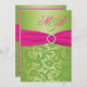 Convite Monogrammed do damasco cor-de-rosa e verde