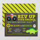 The fun headline “Rev up your engines for a dino-mite party” adds the perfect touch of adventure and dinosaur excitement, making this invitation stand out for joint celebrations. The clean and spacious layout is easy to edit with names, ages, and party details.