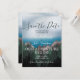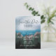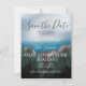 Uma floresta verde exuberante crescendo em picos altos de montanhas que se encontram com um oceano azul profundo, verdadeiramente o melhor dos dois mundos. Um convite de casamento "save the date" inspirado onde as montanhas encontram o oceano, perfeito para um casamento rústico, na natureza ou em um destino montanhoso.
