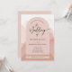Montanha Majestade Arch Frame Moderno Código QR RSVP Blush Rosa Rosa Dourado Convite de Casamento... Nosso dramático convite de casamento "Mountain Majestade" apresenta um quadro moderno de rosa leve para seu texto de convite sobreposto em uma paisagem de montanha em tons de rosa, pincel e ouro rosa. O texto para "o Casamento de" é exibido na tenda escrita manual contemporânea com o texto do convite abaixo na serif clássica e na tipografia sans serif. Um código QR para o seu site de casamento é exibido no verso, permitindo que seus convidados RSVP online e vejam todos os detalhes, incluindo recepção, registro de presentes, acomodações e opções de menu. O código QR do site de casamento e todo o texto (além dos gráficos de caligrafia) podem ser facilmente revisados com suas próprias informações usando o modelo de personalização.