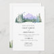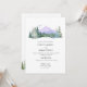 Este elegante convite de casamento apresenta uma floresta a cores-d'água e uma paisagem de montanha, detalhes minimalistas e texto caligráfico. A parte traseira tem detalhes adicionais e placas de gabinete de fazer de código QR opcionais. É clássico, mas moderno, e certamente trará a cena para o seu casamento de destino de montanha.