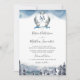 Deleite amigos e familiares com este convite diferenciado, cheio de arte e detalhes finos. Desenho com elegante Brasão com detalhes florais em azul empoeirado, azul-marinho, sage, cinza e caramelo, cervo e área no centro com as iniciais do seu nome e fita azul com data do casamento. Lavagem de aquarela azul empoeirada atrás do brasão e cativantes montanhas e paisagem florestal na parte inferior. Parte de trás do cartão com lavagem de aquarela azul empoeirada e lindo buquê floral no centro mostrando seus nomes. Um convite azul empoeirado requintado, ideal para destinos de casamento ao ar livre, para amantes da natureza e montanhas e florestas.