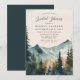 Este convite de chá de panela é uma exibição encantadora e rústica de beleza natural. O centro do convite é uma pintura em aquarela deslumbrante de uma cordilheira e pinheiros altos em tons de azul, verde e cinza. A pintura é colocada contra um fundo texturizado e cremoso que adiciona calor e charme rústico ao design.