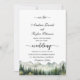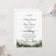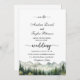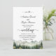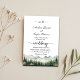 Um convite elegante para o casamento com montanhas de aquarelas e pinheiros que você pode personalizar com seus detalhes.