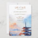 Convide seus convidados para um casamento de destino exclusivo com este convite "Salvar a Data" com uma ilustração impressionante de aquarela do Monte Fuji e da icônica Chureito Pagoda. Com tons suaves de laranja, rosa e azul, este design captura a beleza serena da paisagem do Japão, evocando um senso de romance e elegância cultural. Perfeito para um casamento no Japão, este convite mostra a vista pacífica e inspiradora do Monte Fuji no nascer do sol ou pôr do sol. Ideal para casais que amam viagem e natureza, este cartão define um tom sofisticado para sua celebração inesquecível.