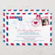 Um divertido e criativo Recebimento de Casamento com Listras de Correio Aéreo Vermelho e Azul para enviar a todos os seus convidados anunciando seu casamento no destino. Este local é para Montego Bay, Jamaica com um mapa-múndi e um coração vermelho colocado sobre a localização da Jamaica. Se você tiver um local diferente, por favor envie um e-mail para paula@labellarue.com ANTES de fazer um pedido e eu configurarei um para esse local. Adicione sua foto de casamento favorita na área do selo. Certifique-se de escolher o papel cartão que você deseja para imprimi-lo!